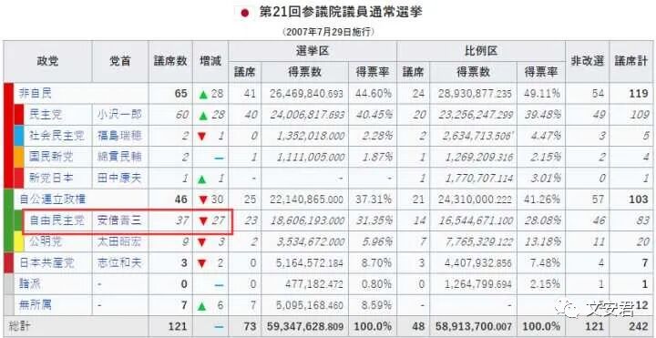 安倍第一首相任期时内阁丑闻不断,支持率跌到最低点,在2007年的参议员选举中自民党大败,当时就有让安倍内阁全体辞职的声音。
