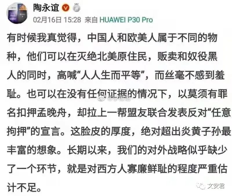 西方、港台的政客和知识分子,许多人的脑子本质上就是西方话语的复读机,已经被训练得丧失了独立深度思考的能力。