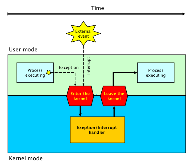 这种情况下,我们必须主动放下手里的活,去处理异常,所以我们也说异常是同步的,而中断不知道什么时候发生,所以是异步的。