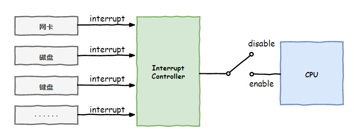 哦不对,还有一种不可以屏蔽的中断NMI,走得是绿色通道。不过我可不期望有这种事情发生,因为一般都没有好事,不是电源断电就是温度过高,或者总线出了错误等这之类严重的事情。