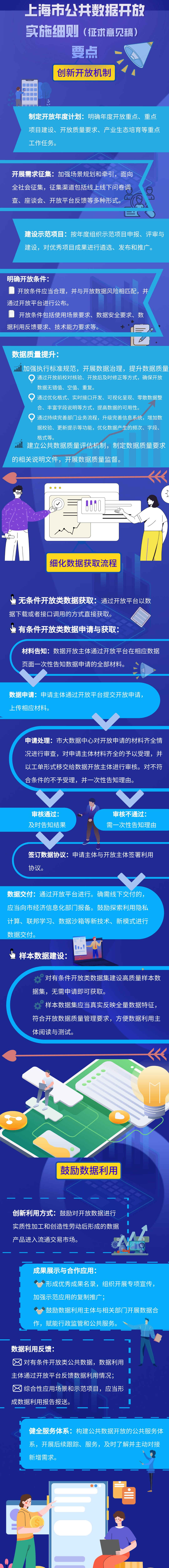 为贯彻落实《上海市数据条例》《上海市公共数据开放暂行办法》等有关法律法规,加快推进本市公共数据更高水平开放,我委牵头起草了《上海市公共数据开放实施细则(征求意见稿)》,现公开征询公众意见,欢迎提出宝贵意见和建议。