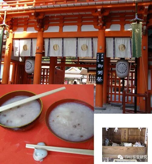 今天在日本很多地方,正月十五日依旧保存有举行粥祭、喝红小豆粥的习俗。比如在京都下鸭神社,每年都举行御粥祭。这一习俗,史有明载是来自中国的蚩尤神话。《本朝月令》引用《月旧记》云: