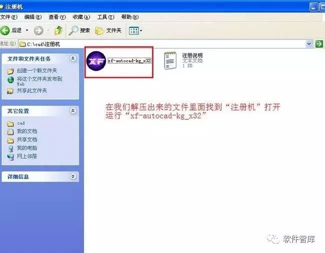 13.打开解压出来的文件里面“注册机”,如果是XP系统,可直接打开双击打开注册机文件夹中的.exe文件;如果是win7系统,用鼠标右击注册机文件夹中的.exe文件,选择【以管理员身份运行】