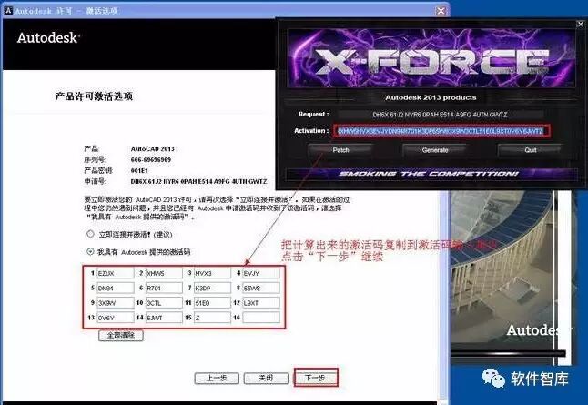 15.把计算出来的激活码复制到激活码的输入框内,然后点击【下一步】