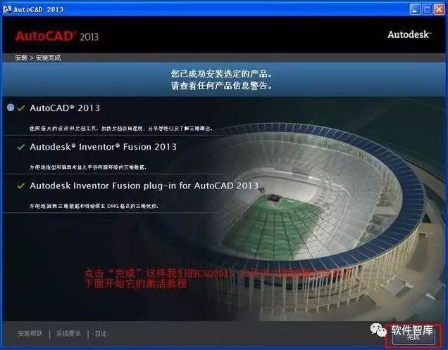 8.点击【完成】,AutoCAD 2013主程序安装完成