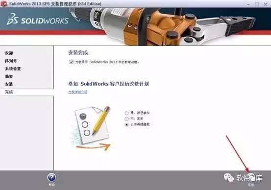 7.点击【完成】,SolidWorks 2013主程序安装完成