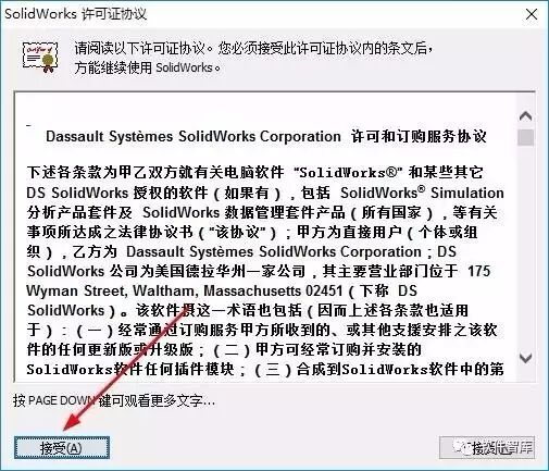 10.双击桌面SolidWroks 2013图标,进入许可协议界面,点击【接受】