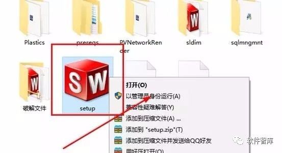 12.下面开始破解,打开破解文件夹,找到“SW2010-2016.Activator.GUI.SSQ.exe”,右击选择【以管理的身份运行】
