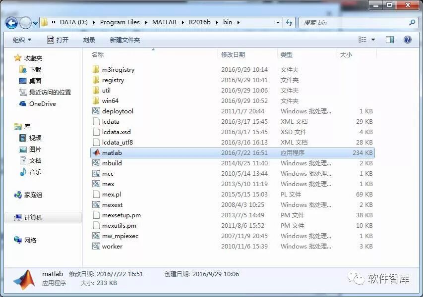 19.生成桌面快捷图标,依次打开文件夹D:\ProgramFiles\MATLAB\R2016b\bin找到matlab.exe启动图标,右击→发送桌面快捷方式