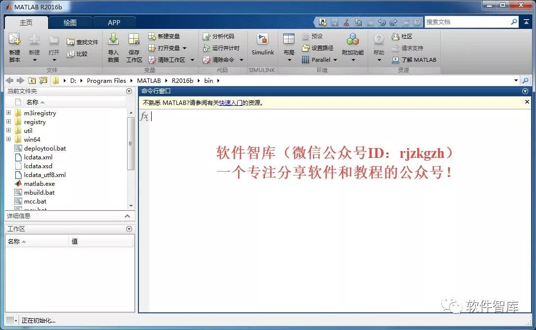 20.双击桌面Matlab快捷图标打开软件,用户就可以永久完全免费的matlab 2016b了,界面如下图所示: