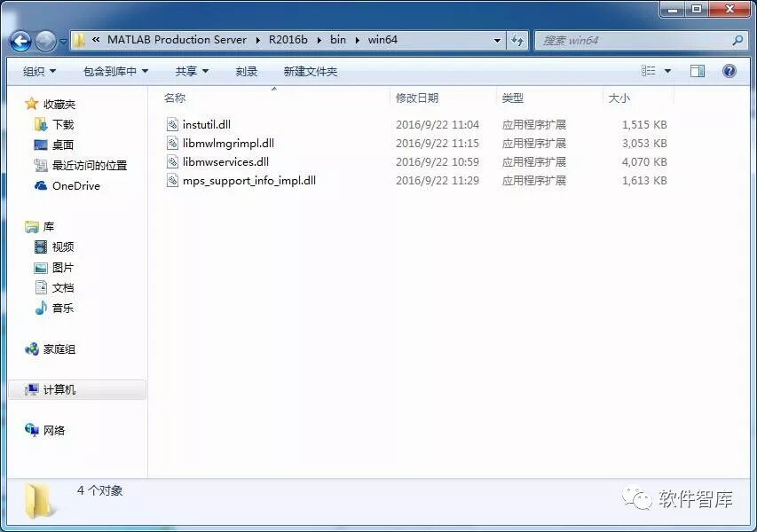 17.打开Matlab 2016b Win64Crack文件夹中的MATLAB Production Server\R2016a\bin\win64,复制其中的四个dll文件,如下图所示:
