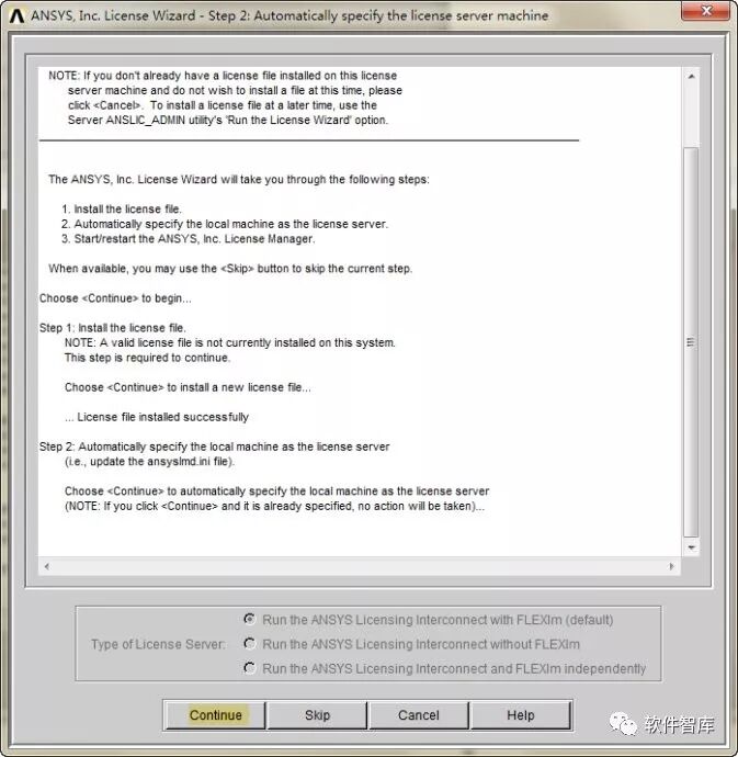 36.点击【Continue】继续,在弹出的文件选择对话框中,将前面生成的license.txt文件拷贝到C:\Program Files\ANSYSInc\Shared Files\Licensing路径下,并点击【打开】按钮,如下图所示
