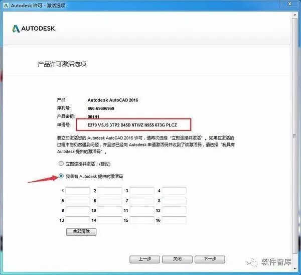 13.进入激活码界面,勾选“我具有Autodesk提供的激活码”