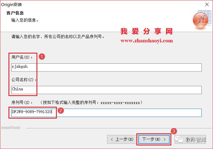 7.进入用户信息界面,任意填写用户和公司名称即可,然后在“序列号”框中输入:DF2W8-9089-7991320,一定不要输错,否则最后会激活失败!!!