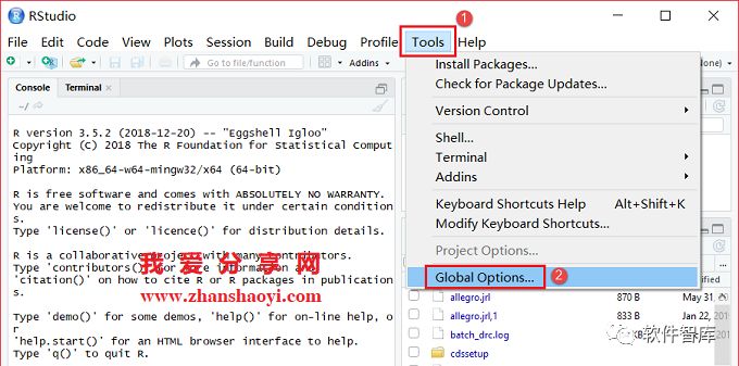 22.若打开RStudio软件运行时存在乱码,点击【Tools】→【Global Options】