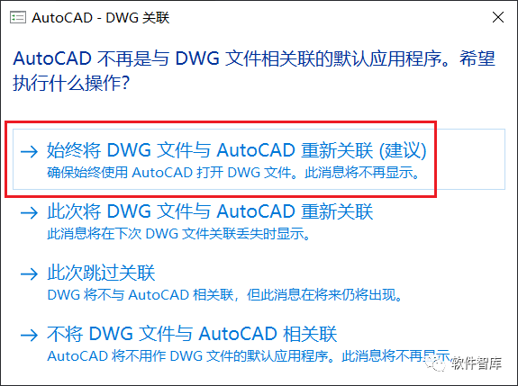 16.首次打开“AutoCAD-DWG关联”窗口,推荐点击第一项