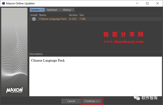 16.弹出如下Update界面,点击【Continue】