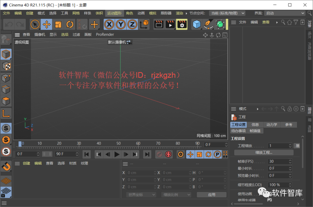 13.打开C4DR21软件,英文版界面如下: