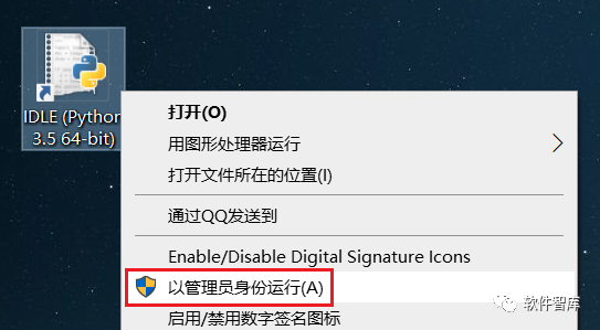 8.返回电脑桌面,找到Python3.5软件图标,鼠标右击选择【以管理员身份允许】