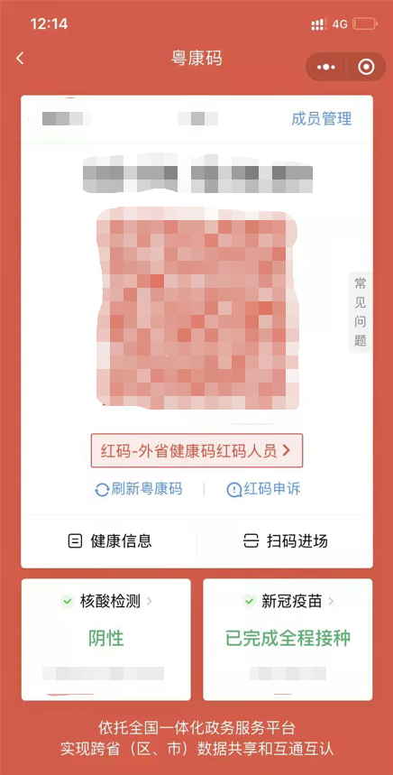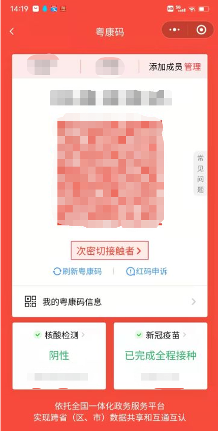 如有申诉,可以点击粤康码中的“申诉”,了解申诉途径。
