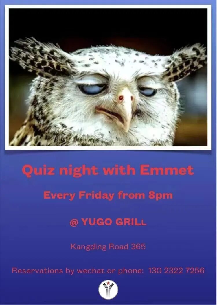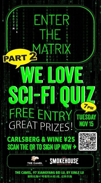 Shanghai's longest running, the Wednesday Quiz Night at El Santo is absolutely free to enter and features 10 rounds covering everything from current events, geography, history, pop culture, music, film and more, with great prizes up for grabs.This one gets fully booked each week, so scan the QR on the poster above to sign up now.Every Wed, 7pm; Free Entry.El SantoB/1, Found 158, 158 Julu Lu, by Ruijin Yi Lu 巨鹿路158号B1层, 近瑞金一路.