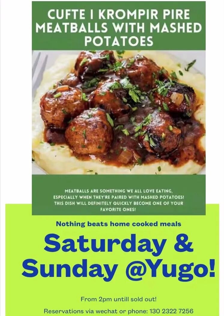 Yugo Grill is where all our Balkan comfort food dreams come true, and they certainly don't let us down on the weekend. Each Saturday and Sunday, Chef Rax serves a different home cooked dish for lunch.This weekend it is Cufte I Krompir Pire Meatballs with Mashed Potatoes, guarenteed by the Yugo team to become one of your favorites!Service starts at 2pm and goes until they run out, so we'd strongly suggest booking ahead via WeChat or phone on 130 2322 7256.Sat & Sun, 2pm until sold out.Yugo Grill365 Kangding Lu, near Shanxi North Lu 康定路365号,近陕西北路.