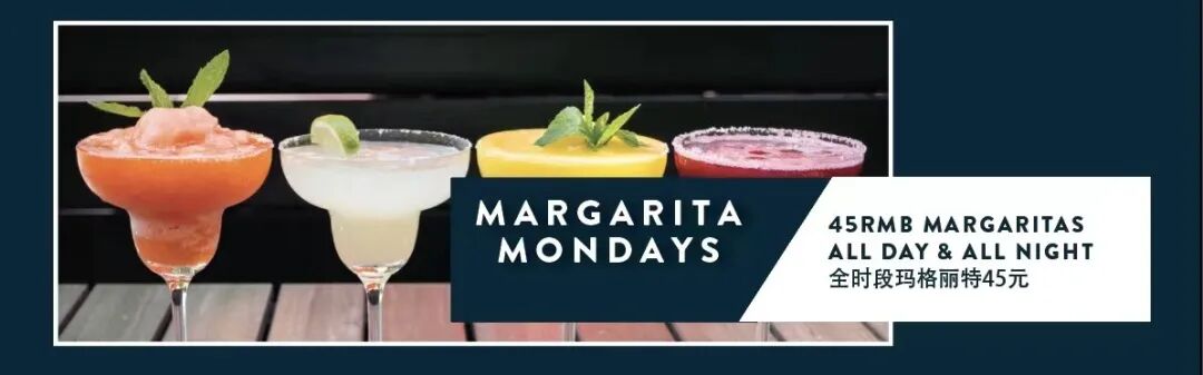 It is RMB45 Margartias all day, all night, all Monday at Cantina Agave .Tuesday