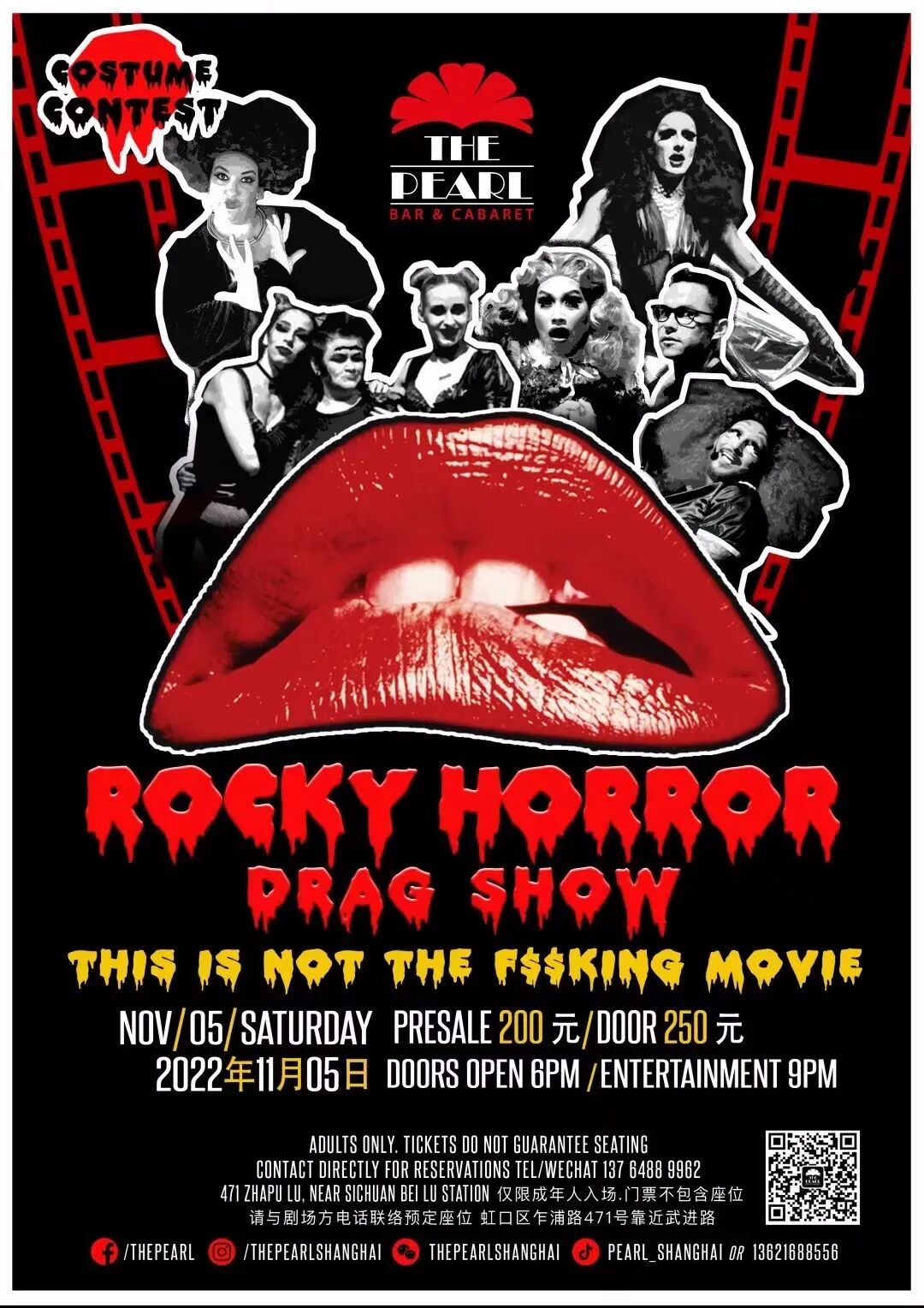 Thought Halloween was over? Think again! At the The Pearl the gender-bending fun continues into the following weekend with Rocky Horror Drag Show that is as scary as it is seductive as it is outrageous. Don't miss it! Scan the QR to get your tickets now: Sat Nov 5, 6pm doors, 9pm show; RMB200 pre-sale, RMB250 on the door. The Pearl471 Zhapu Lu, by Wujin Lu 乍浦路471号, 近武进路.