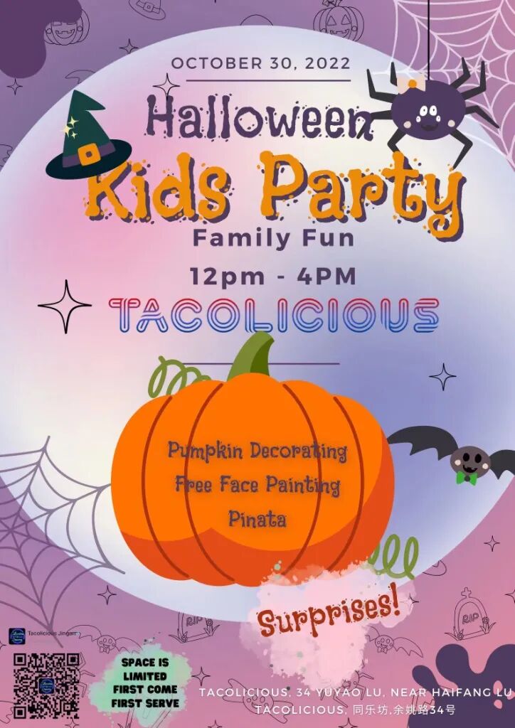 Tacolicious is welcoming kids for an afternoon of Halloween fun on Sunday, with pumpkin decorating, free face painting, a pinata and even more surprises! Sun Oct 30, 12-4pm; Free. TacoliciousRoom 104-105, 34 Yuyao Lu, by Xikang Lu 余姚路34号1幢104-105室, 近西康路.