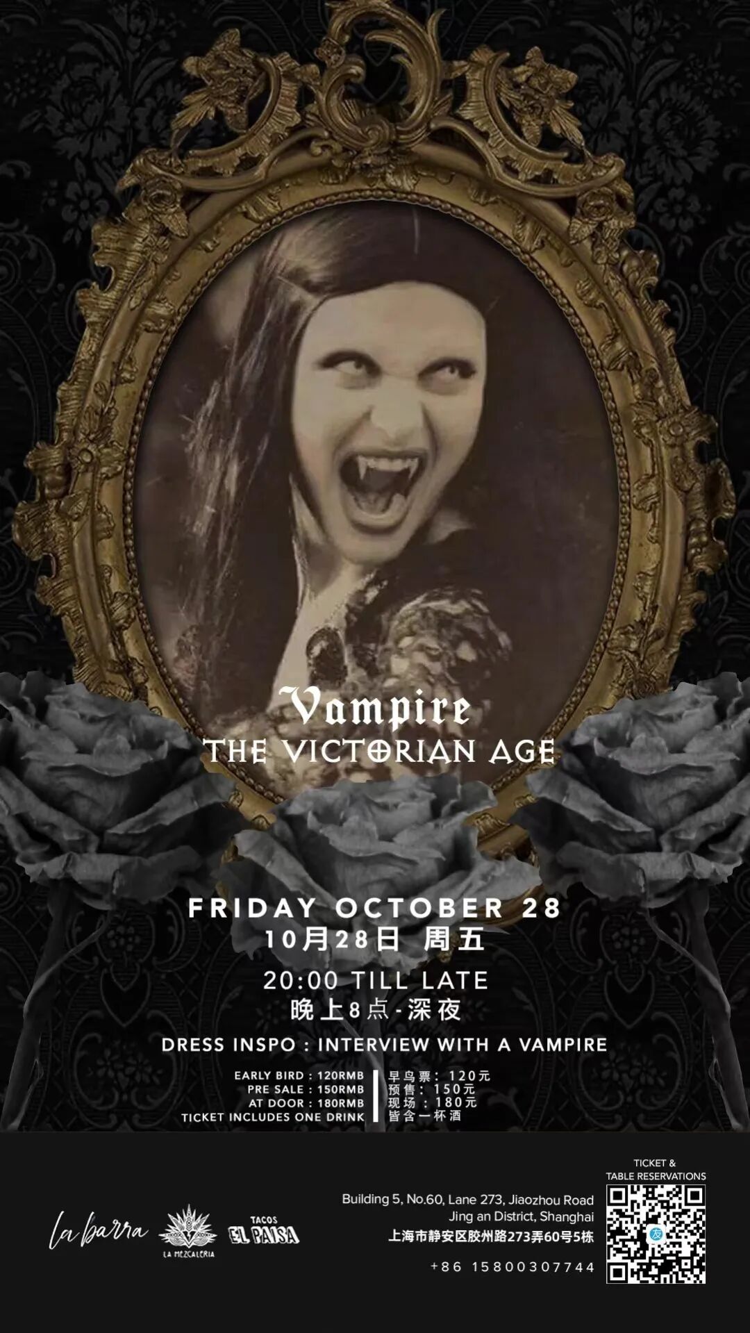 Take your inspiration from Interview With a Vampire and party the night away at La Barra. Fri Oct 28, 8pm-Late; RMB120 early bird, RMB150 pre-sale, RMB180 on the door, includes one drink ticket. La Barra110, Bldg 5, Lane 273 Jiaozhou Lu, by Xinzha Lu 胶州路273弄60号5幢2楼,近新闸路.