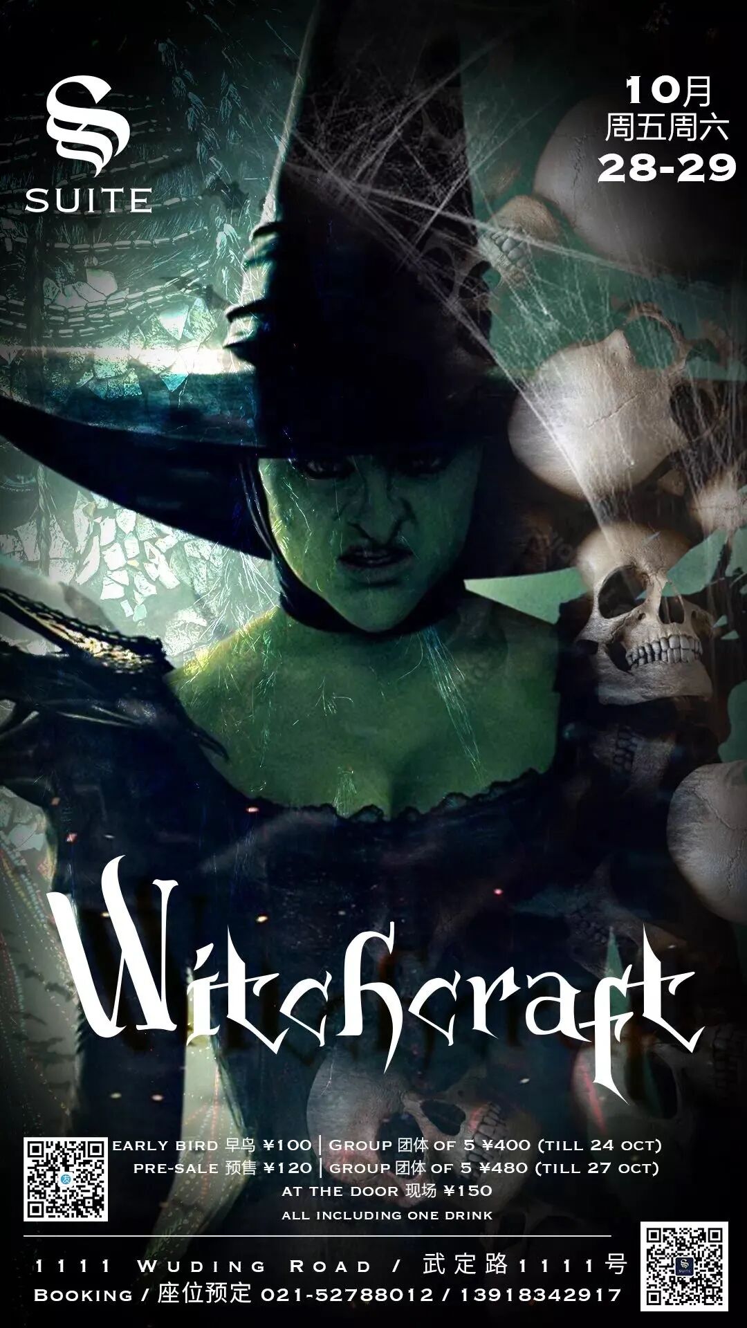 It's a weekend of Witchcraft at La Suite where the evil and scary witches have gathetered. You will hear their evil laughs and they are waiting for you to join. Dress up in your scariest costume and join th spooky Halloween party! Early bird (Oct 24) tickets are RMB100 or five for RMB400 and pre-sale tickets (Oct 27) RMB120 or five for RMB480, while it will be RMB150 on the door. Fri & Sat Oct 28 & 29, 10pm-Late.La Suite1111 Wuding Lu, by Yanping Lu 武定路1111号, 近延平路.
