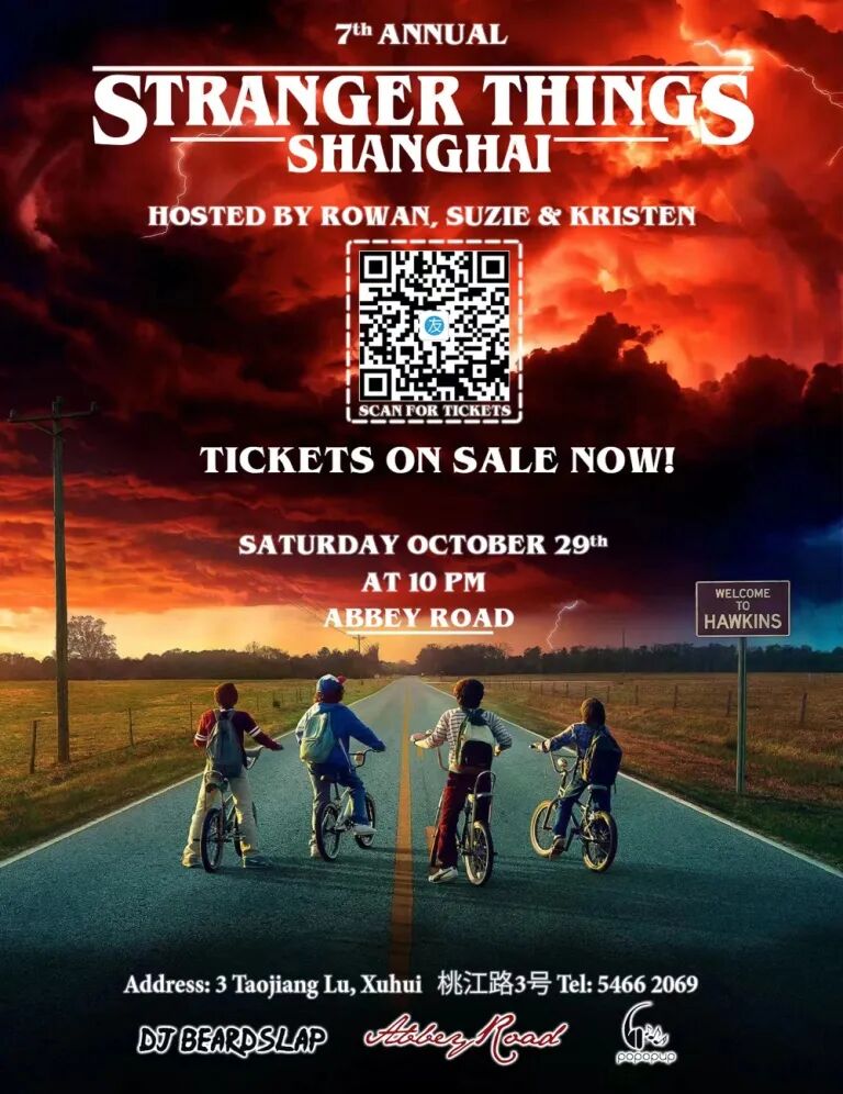 Abbey Road's 7th Annual Halloween Party sees a Stranger Things theme, but that doesn’t mean costumes are restricted to that – think 80s chart toppers, pop classics and Halloween hits to ensure you’ll be dancing well past the Witching Hour! Sat Oct 29, 10pm-Late; RMB128 early bird. Abbey Road3 Taojiang Lu, by Fenyang Lu 桃江路3号, 近汾阳路.
