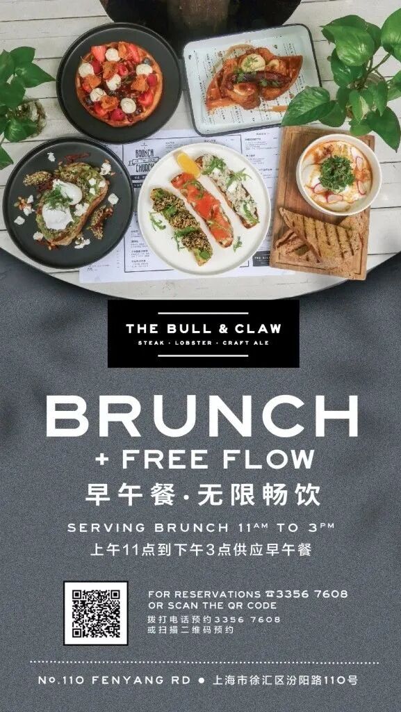 The Bull & Claw brunch is the stuff of Shanghai legends. It’s RMB98 for one course, RMB168 for two, and add the city's most famous free flow deal for RMB198.Food options range from Smashed Avo Toast to Lobster Benedict to Chicken and Waffles to their proper Sunday Roast, which they also do on Sunday evening.And for the Yuletide season they have added Roast Turkey: get your first Christmas dinner in this weekend!Brunch Sat & Sun, 11am-3pm, roast during brunch & Sun from 5pm.