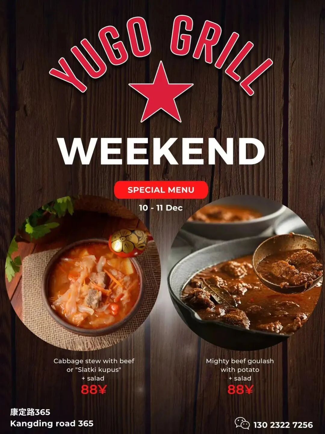 Yugo Grill is where all our Balkan comfort food dreams come true, and they certainly don't let us down on the weekend. Each Saturday and Sunday, Chef Rax serves a different home cooked dish for lunch.This weekend it is cabbage stew with beef or slarki kupus and salad, and Chef Rax's mighty beef goulash with potatoes and salad!Service starts at 11.30am and goes until they run out, so we'd strongly suggest booking ahead via WeChat or phone on 130 2322 7256.Sat & Sun, 11.30am until sold out.Yugo Grill365 Kangding Lu, near Shanxi North Lu 康定路365号,近陕西北路.Abbey Road
