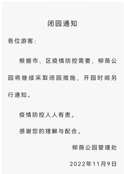 柳荫公园继续采取闭园措施