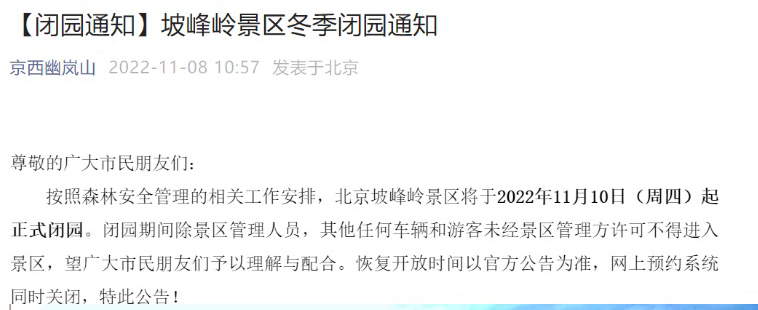 2022年11月10日(周四)起正式闭园
