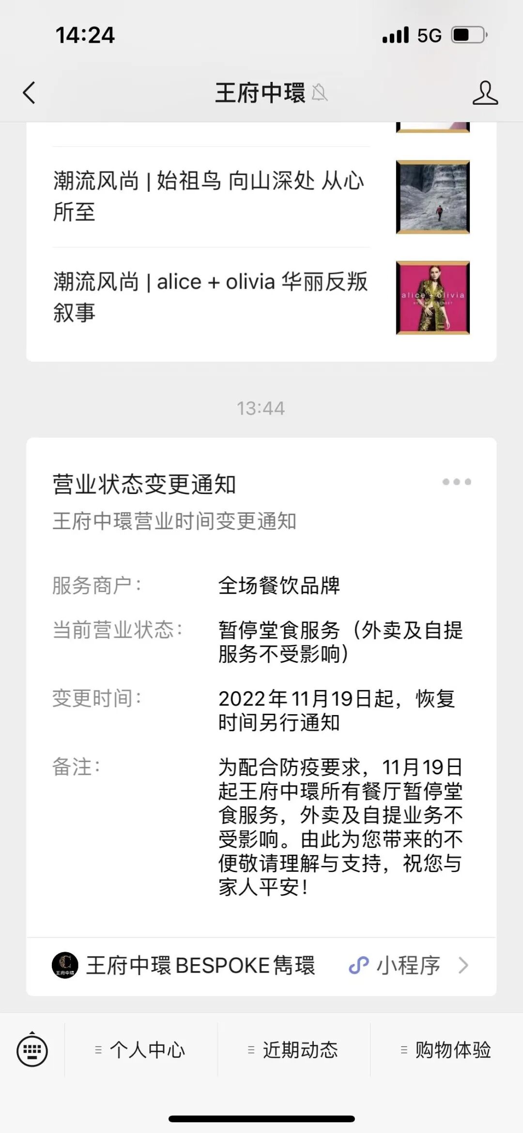 刚刚,据王府中环微信公众号消息,王府中环所有餐厅暂停堂食服务。