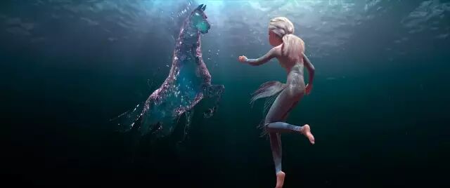 这一部其实远不止艾莎好看,各种细节更加精心,远景也更加恢弘,在视觉上这部片子可以说无可挑剔。《冰雪奇缘2》的最大创新点,其实就在于海报上的那一句slogan:它走出了那个冰雪王国,开拓了一个更加宏大的世界观。我们得以看见了充满灵性的森林背景、壮丽的峡湾景色、瑰丽奇幻的光影。新元素,新人物,新场景都还是紧扣着迪士尼式的天马行空。技术层面也越来越华丽精致,角色们被赋予了更细致多样的表情动作,这些无不彰显着迪士尼越来越精进的电影工业水准。
