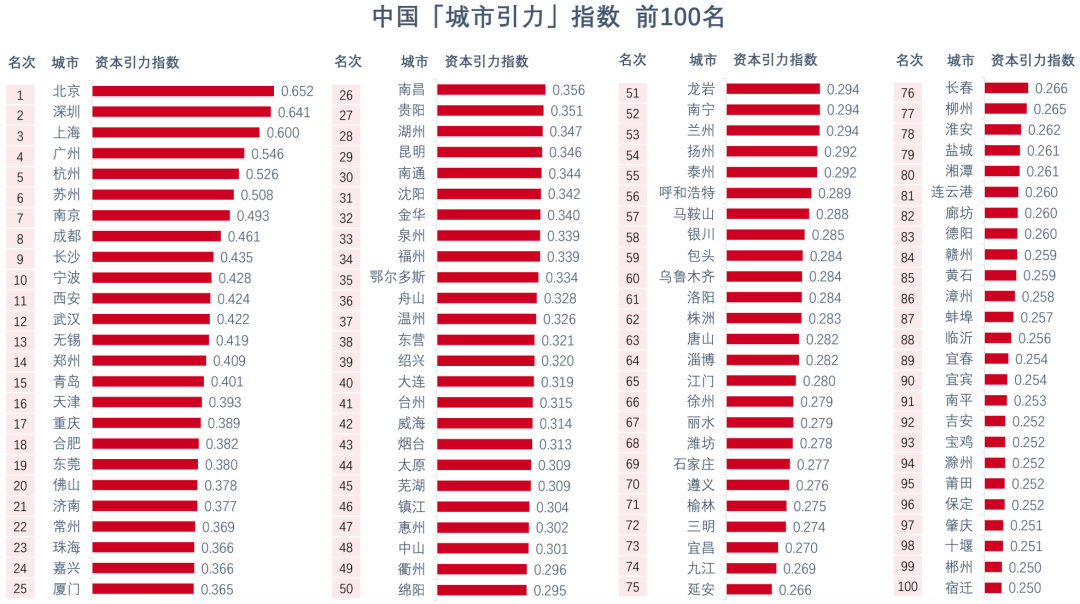 中国城市资本引力指数百强排名(图源:中国城市引力指数报告(2022))