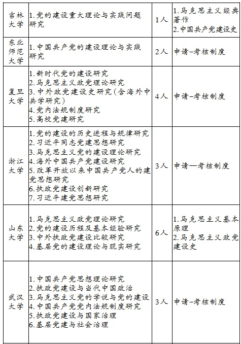 全国党的建设学科博士点设置及招生基本情况表(2018.12)
