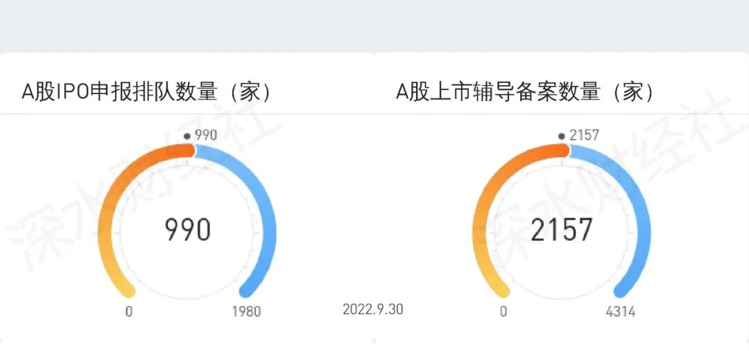 截至9月30日,共有990家公司正在申报IPO流程中,有2157家公司已经进入上市辅导期,按照目前的发行速度,大约需要两年才能消化完。