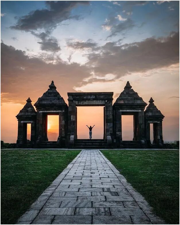 日惹的拉图神庙(Ratu Boko)是享受宁静的完美之地,这里曾经是马塔兰王国的皇宫,现在只剩下了建筑的地基和一些残墙。在日落时分的黄金时段,透过残垣,仿佛依旧能看到当年的芸芸众生和恢弘气势。