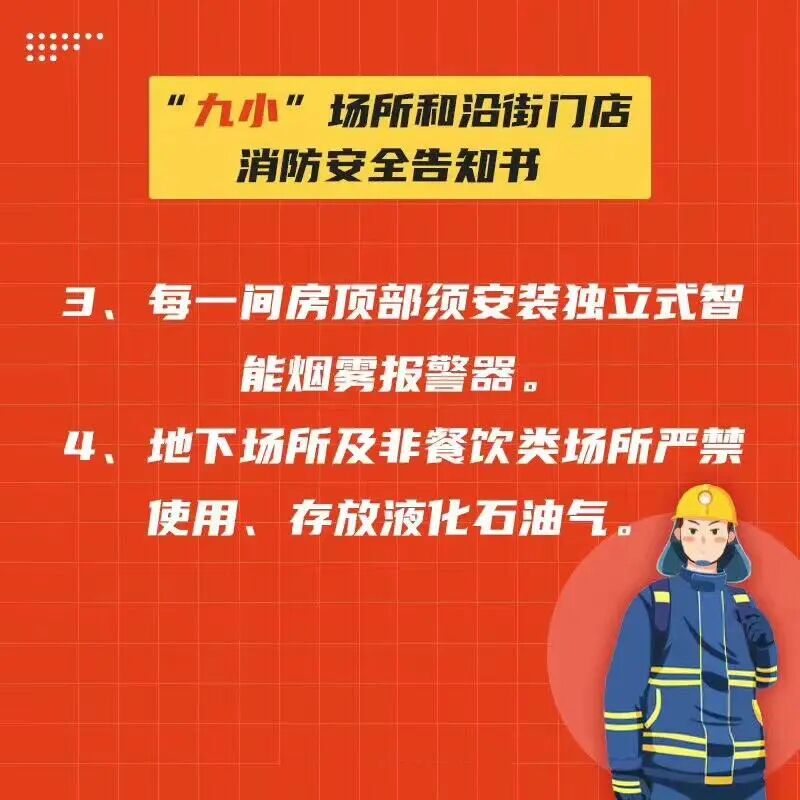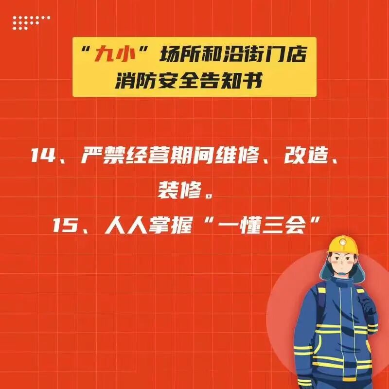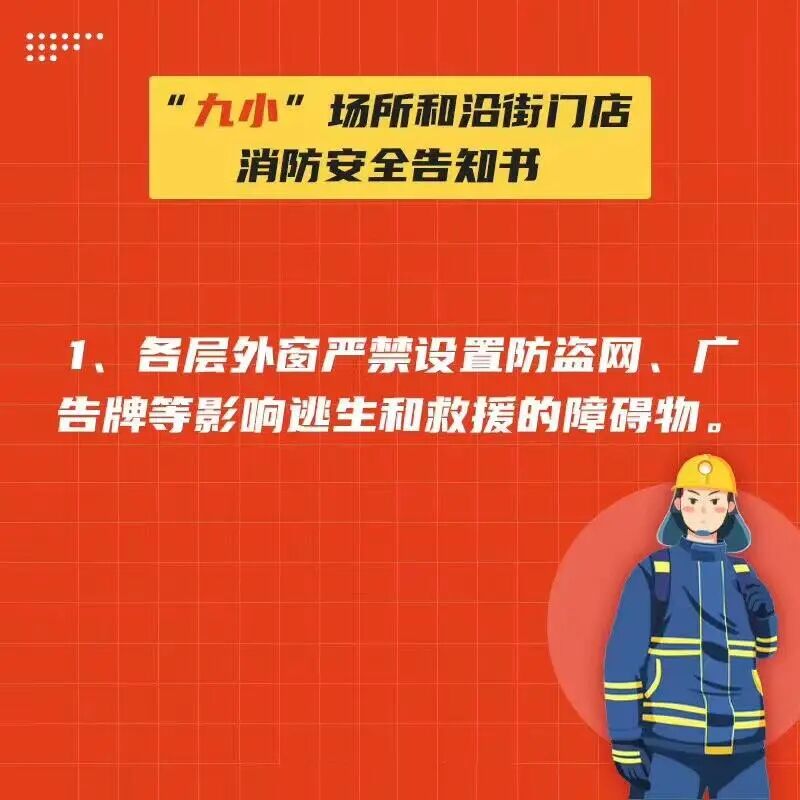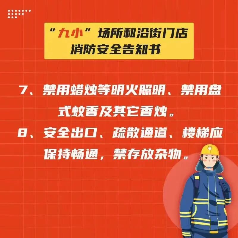 进入沿街门店和“九小场所”时,请您注意消防安全。不要吸烟,不要使用明火。