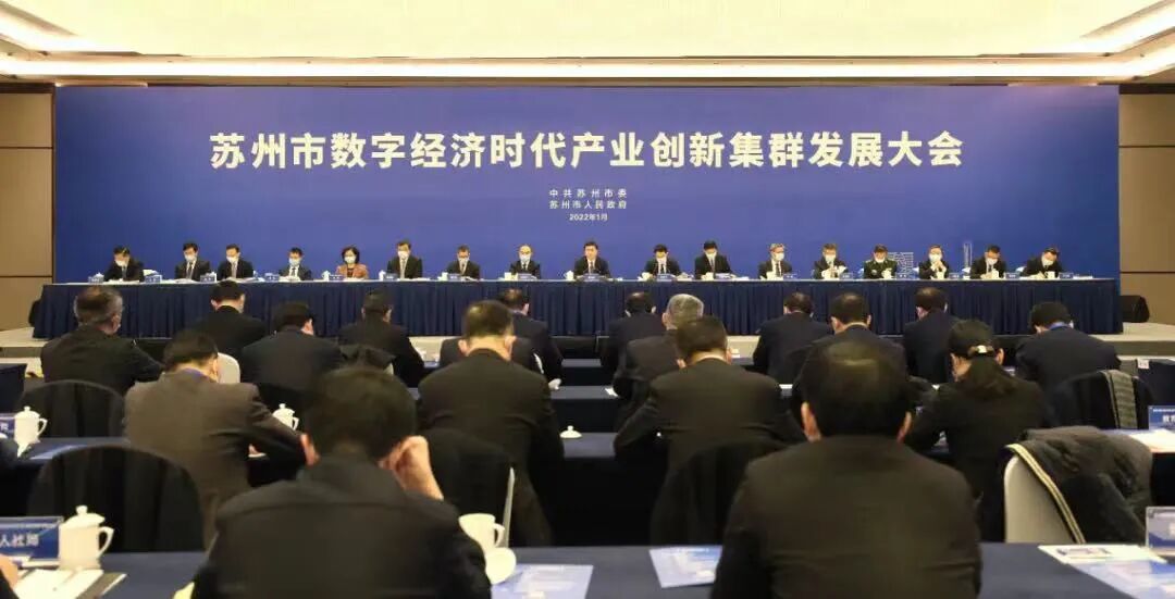 会上,2022年苏州市委、市政府发布“一号文件”《苏州市推进数字经济时代产业创新集群发展指导意见》,瞄准数字经济“新赛道”“主赛道”,聚焦电子信息、装备制造、生物医药、先进材料四大主导产业,实施一系列强有力政策支持创新集群发展。同时,动态投入超1000亿元专项资金,用以支持数字经济时代产业创新集群发展,力度和诚意可见一斑。