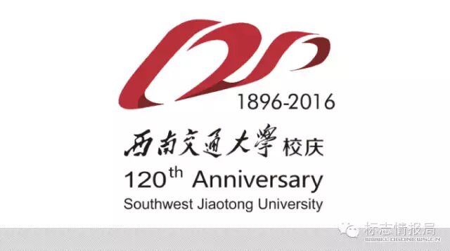 西南交通大学120周年校庆LOGO设计,以流畅飘逸的丝带构成了“120”三个数字,该标志的整体外形又形似一辆前行的列车。丝带代表人文、庆祝以及传承;列车体现学术和发展。整个LOGO结构形式优美,采用红色系配色,图形、文字、颜色搭配简洁明快、和谐美观,可识别性较强,具有浓厚的校庆氛围。