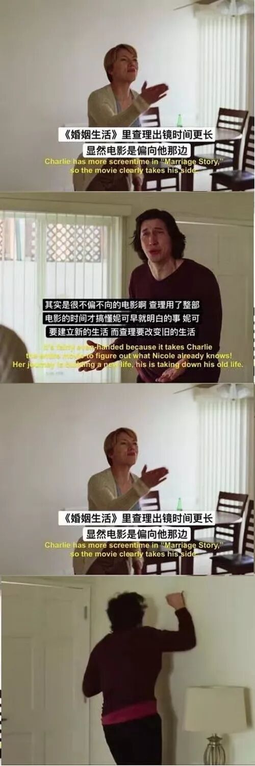 《婚姻故事》中长达十几分钟的争吵绝对不是居委会大妈去调解破碎家庭时的景象,而是极度贴近生活的情景再现,每个在恋爱、婚姻生活中有过争吵的人,都会感同身受。