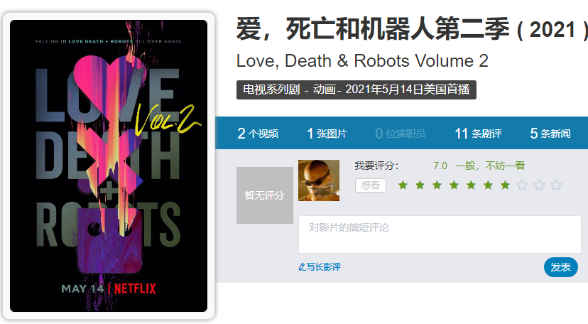 时隔两年,Netflix终于推出《爱,死亡和机器人第2季》,在5月14日一次性放出8集。