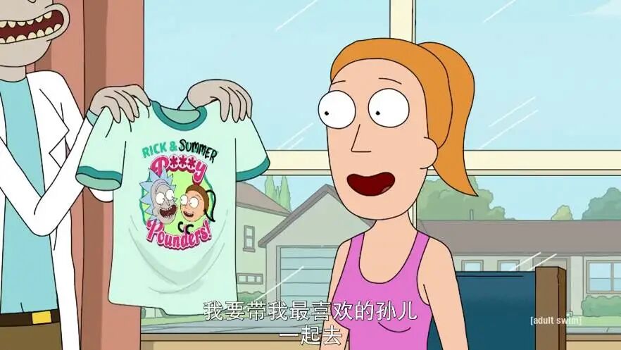 瑞克给夏末穿的T恤是之前给莫蒂穿过的衣服。
