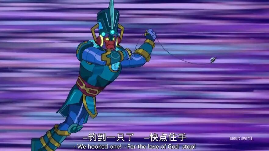 瑞克的太空飞船吊着恒星飙车,后面跟着的是漫威反派行星吞噬者(Galactus)。