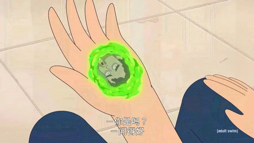 莫蒂左手粘上传送门液体,里面有个人和他说话,这就像吸血鬼猎人D左手上有个会说话的寄生虫。这对他完成任务很有帮助。